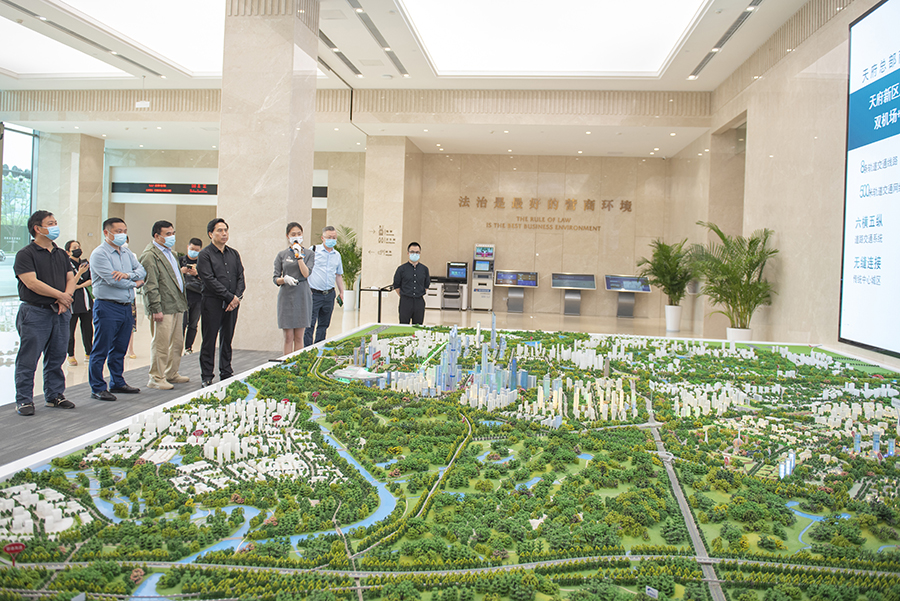 随后,考察团一行来到了天府新区规划厅,对天府新区发展理念、生态格局、城镇空间结构、国内外交通体系、功能定位、公共服务设施体系等进行了总体了解。