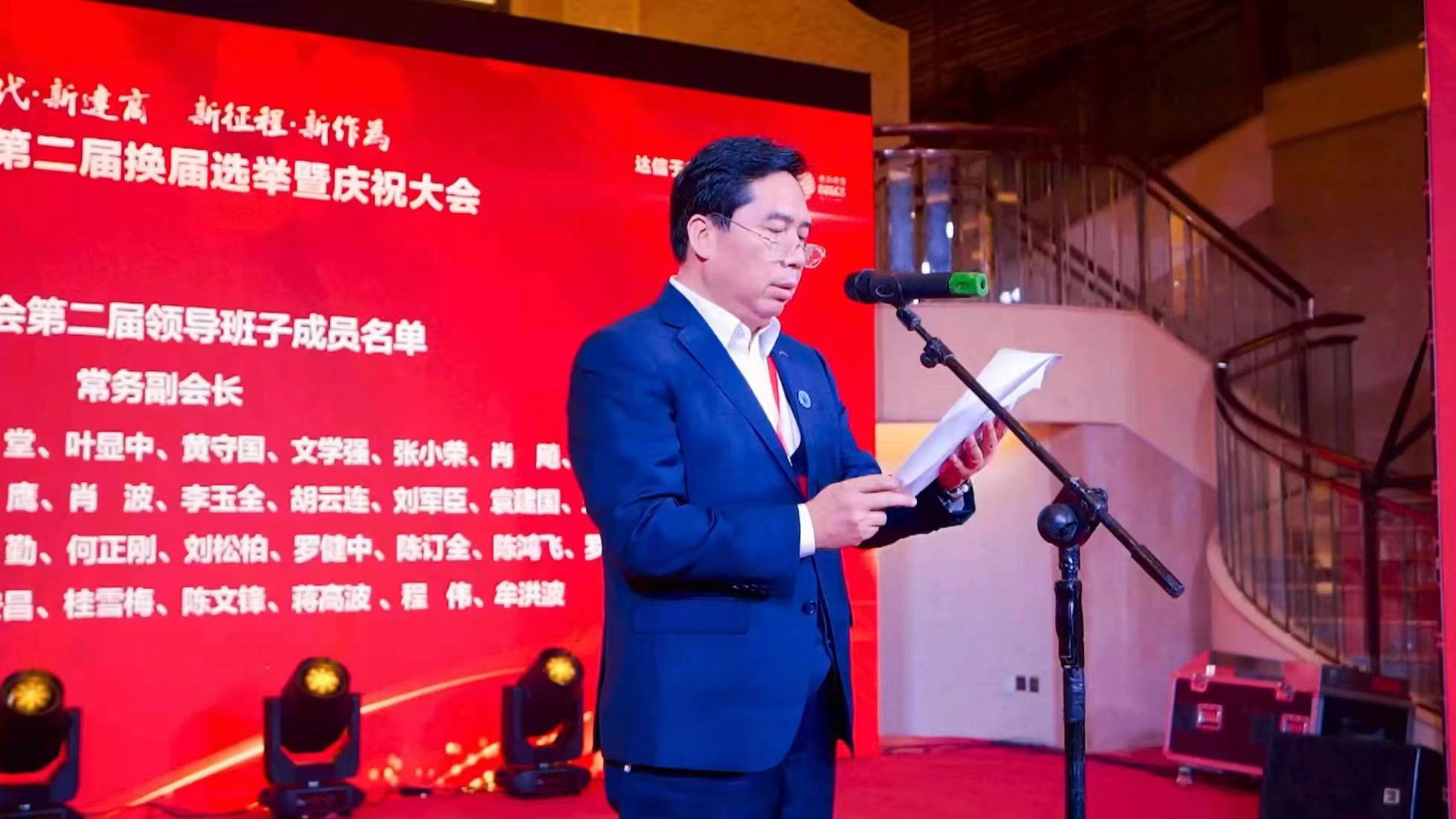 这是胜利的大会。达商总会党委书记、执行会长兼秘书长郑权国向大家宣读了达商总会第二届领导班子成员名单。达商总会将在终身名誉会长刘峙宏、唐铭阳,会长刘江东的带领下,迈向中华民族伟大复兴的新征程,展现新作为。