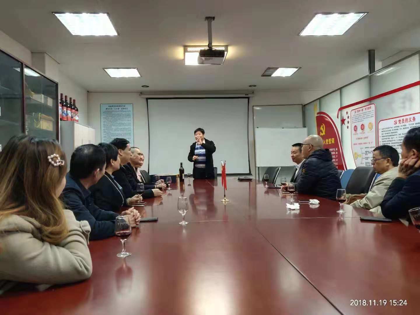 2018年11月19日上午,考察团一行来到中法合营王朝葡萄酿酒有限公司。中法合营王朝葡萄酿酒有限公司始建于1980年,是中国第二家、天津市第一家中外合资企业,合资外方是世界著名的法国人头马集团亚太有限公司。30余年来,王朝公司致力于生产既有中国地域特色又有欧洲传统风格的葡萄酒和白兰地,产品丰富多样、品质一流,创造了享誉中外的“DYNASTY 王朝”品牌。 王朝葡萄酒曾先后荣获14枚国际金奖,8枚国家级金奖,被布鲁塞尔国际评酒会授予国际最高质量奖,主流产品被中国绿色食品发展中心认证为“绿色食品”。王朝葡萄酒1983年成为国宴用酒,1985年成为外交部驻外使领馆用酒并长期供应。